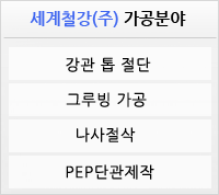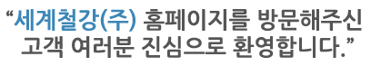 저희 세계철강(주)은 철강의 유통업체로서 저렴한 가격의 제품을 신속 정확한 납품을 최우선으로 하는 철강 유통 및 절단 가공 업체입니다. |
